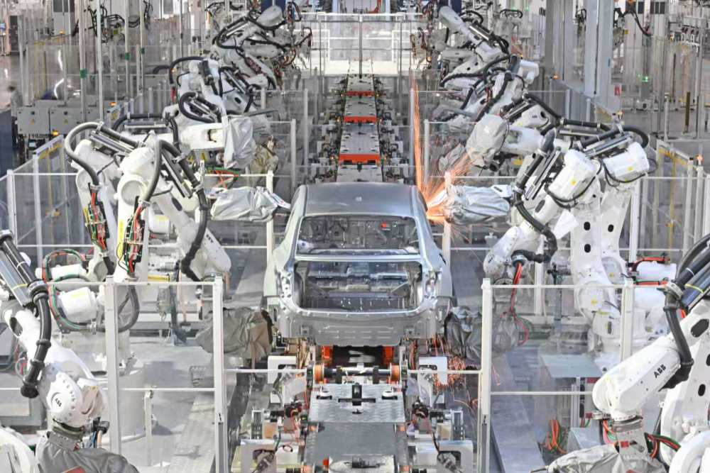 走进中国一汽红旗繁荣厂区,一幅充满科技感的汽车制造场景映入眼帘,工业机器人手臂升降旋转,自动导航运输车往来穿梭,智能控制屏幕上数字闪烁,在自动化机械与专业人工的配合下,最快每52秒就有一辆新能源汽车下线。