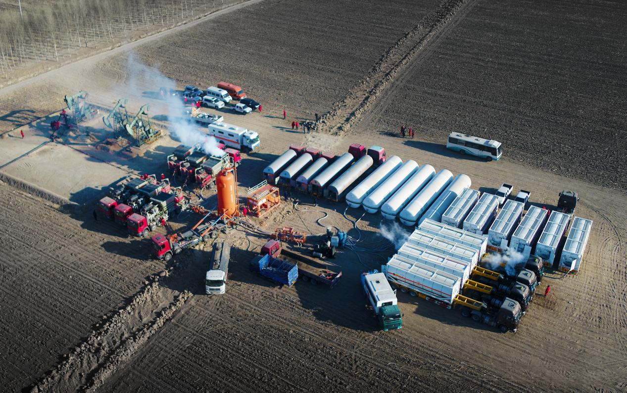 致密油压裂施工现场。