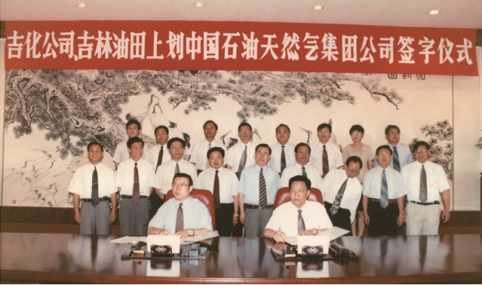 1998年7月16日,吉林油田上划中国石油天然气集团公司签字仪式现场。