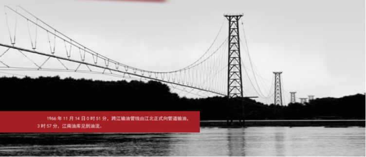 1966年11月14日,跨江输油管线正式输油,管线全长2260米,设计年输油能力65万吨。