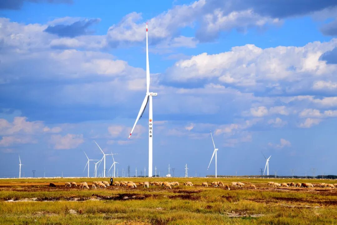 风机屹立,光伏成阵。以“吉油绿”助力“吉林绿”,吉林油田持续推进零碳示范区建设。目前在新立累计建成集约化大平台31个,部分平台通过“风光发电+电加热替代”等技术组合,实现区域用能100%清洁替代。